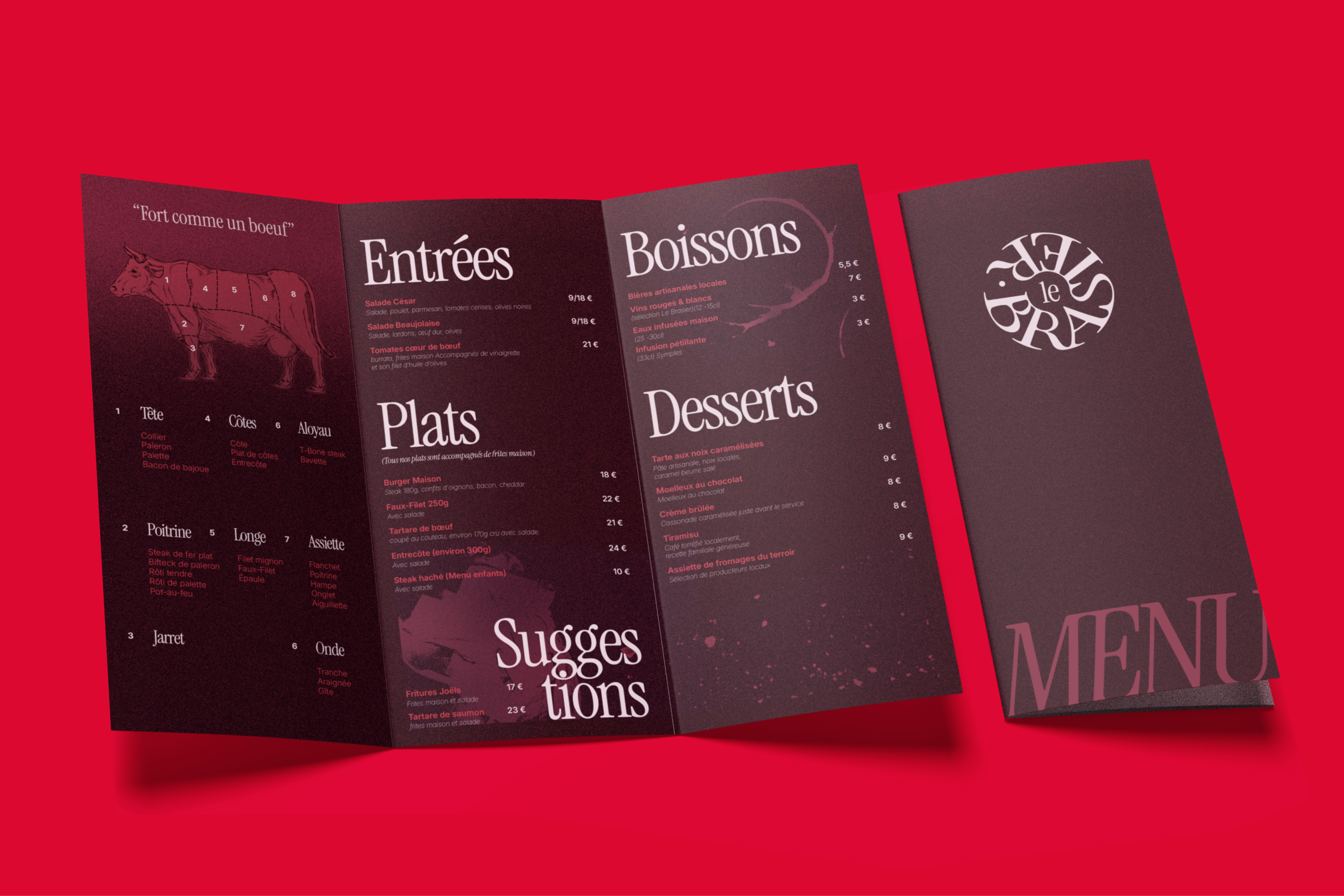 La charte graphique du Brasier a été pensée pour traduire visuellement l’ADN du restaurant : chaleur, convivialité et générosité.